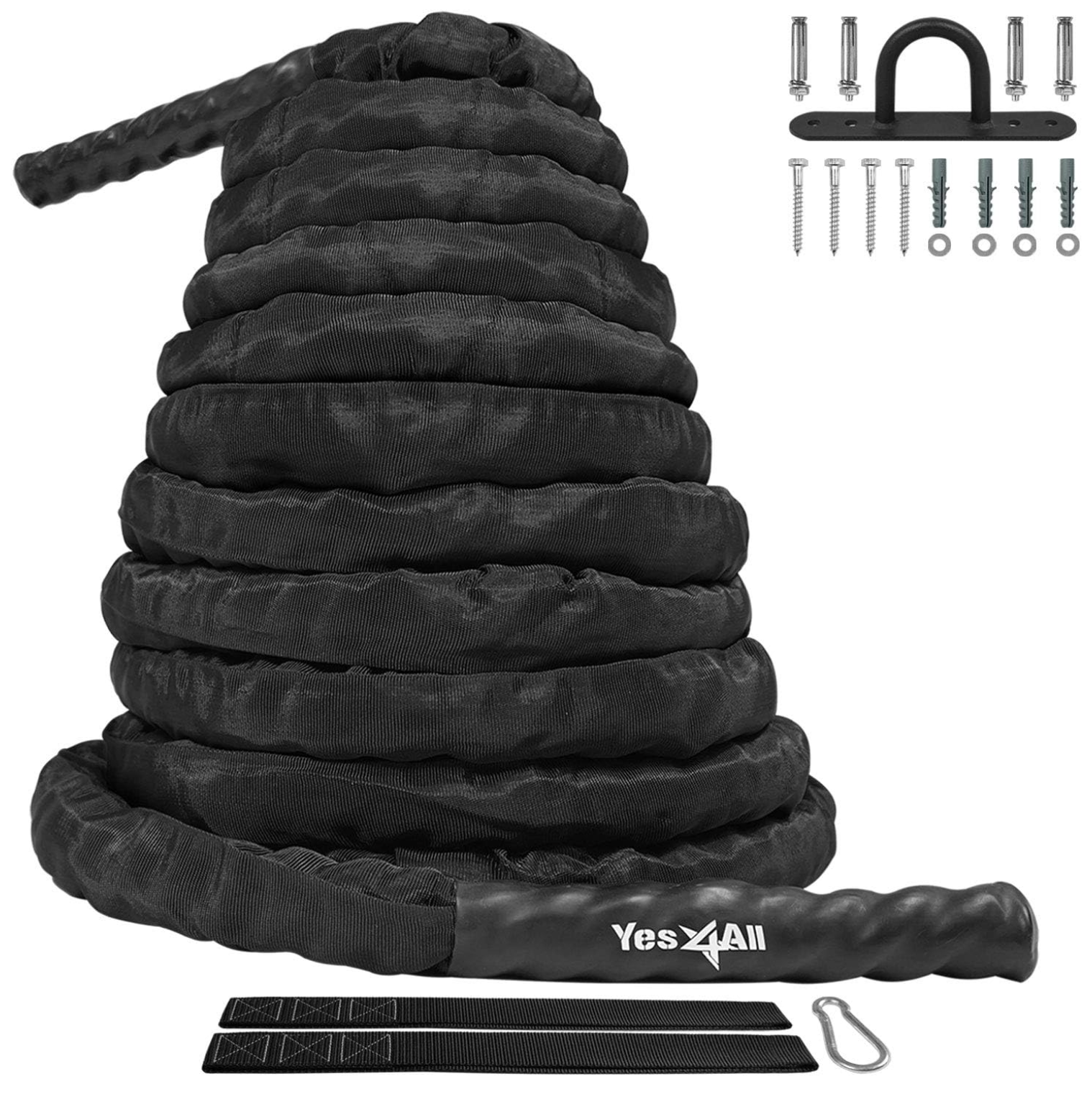 Yes4All Battle Ropes with Protective Cover β Steel Anchor & Strap Included - 1.5/2 Inch Diameter, 30, 40, 50 Ft Length, Crossfit and Core Strength - Fathers Day Gifts